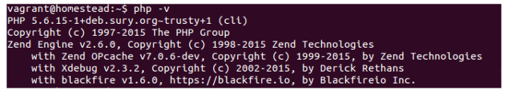 该版本 Homestead 上预装的 PHP 版本是 5.6.15: