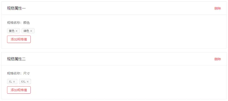 一个大概的商品规格SKU添加的功能大概就差不多了,后面的话还有对表单数据进行处理,大家可以自行研究。