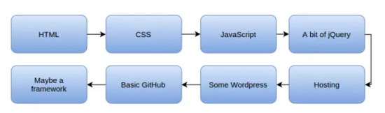 帮助摆脱这种陷阱的方法之一是画一个你需要学习的路线图。例如, 要想成为一个前端开发者,你的路线图可能是这样的: