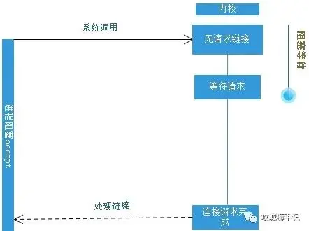 服务端通过调用accept() 函数来接受外来请求,如果一直没有新的链接过来,服务端将会被挂起,进入阻塞状态。