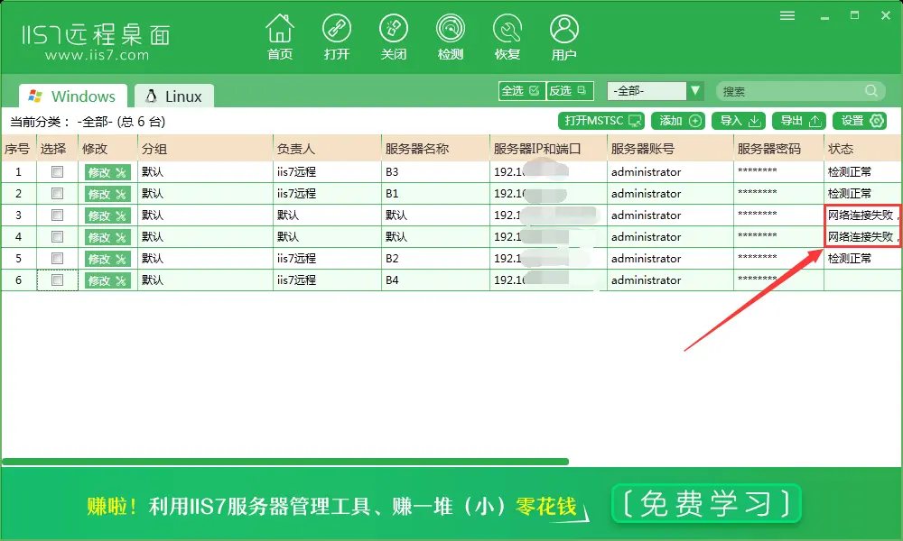 如果这几步骤设置完毕之后仍然无法远程连接电脑,那么就建议你重新选择一款远程桌面管理系统,这样更能方便你的操作,我现在用的就是iis7远程桌面管理系统,它可以进行很多的批量操作,而且它的连接操作也非常的简单。