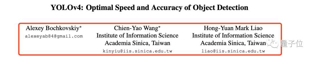 定睛一看,原来这次YOLOv4的作者阵容中,确实没有Redmon。