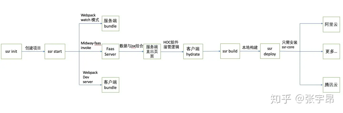 由于以上背景,我们基于之前已经开源并且受到广泛好评的[最小而美的Egg + React + SSR 服务端渲染应用骨架](github.com/ykfe/egg-re…) (已受到阿里集团内部多个bu以及多个外部公司生产环境使用反馈开发体验远好于next.js等框架)进一步提炼出Serverless场景下的SSR框架。让SSR应用的开发和发布变得更加简单透明友好同样支持SSR/CSR两种渲染模式随时切换。只需5分钟便可以部署一个Faas SSR应用在公网让所有人访问。