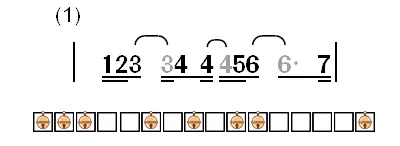 首先找到歌曲中最细的分隔是什么音符,然后用画格子的方式去表示出一小节需要弹多少次,在要弹响的上面放一个铃铛或者其他自己喜欢的标志,空着就是延长音。
