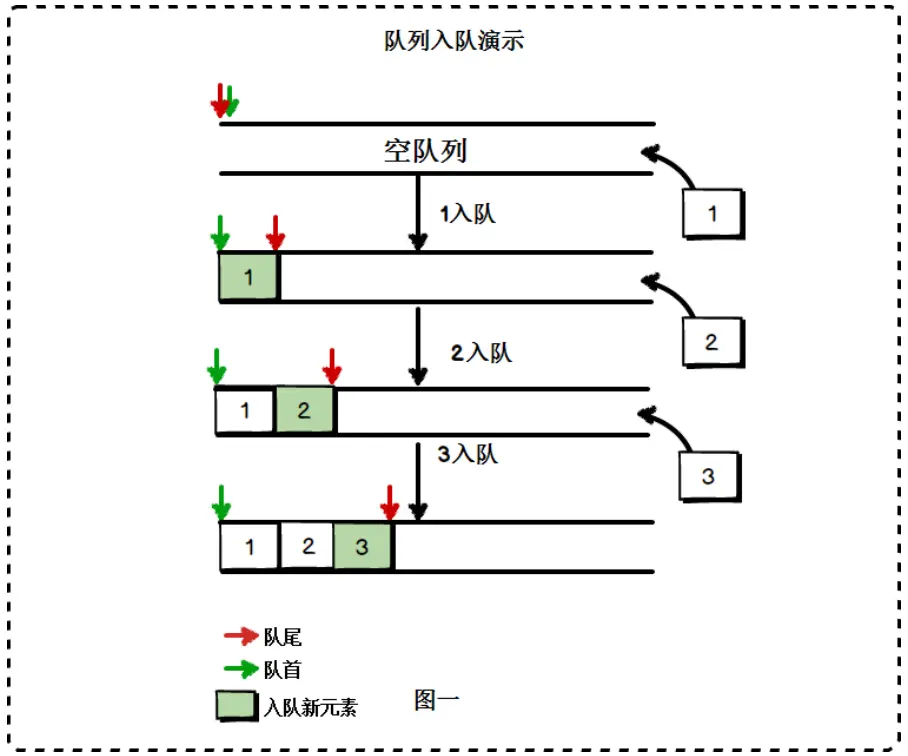 左侧是队首,右侧是队尾,元素只能从队尾入队,队首出队。