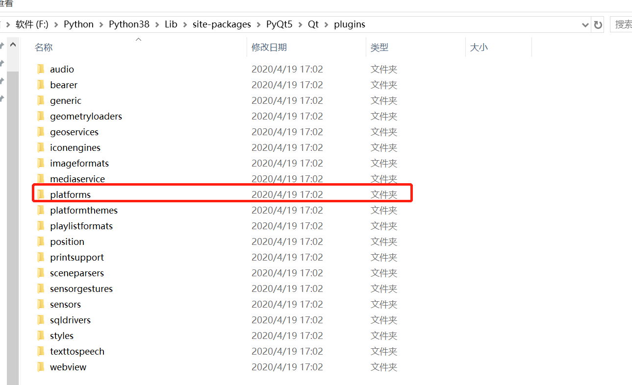 把 “F:\Python\Python38\Lib\site-packages\PyQt5\Qt\plugins” 路径下的 “platforms ”文件夹复制到 “F:\Python\Python38\Lib\site-packages\pyqt5_tools\Qt\bin”目录下,替换原有的 “platforms ”文件夹,这样就可以正常运行 PyQt5-tools designer 工具了。