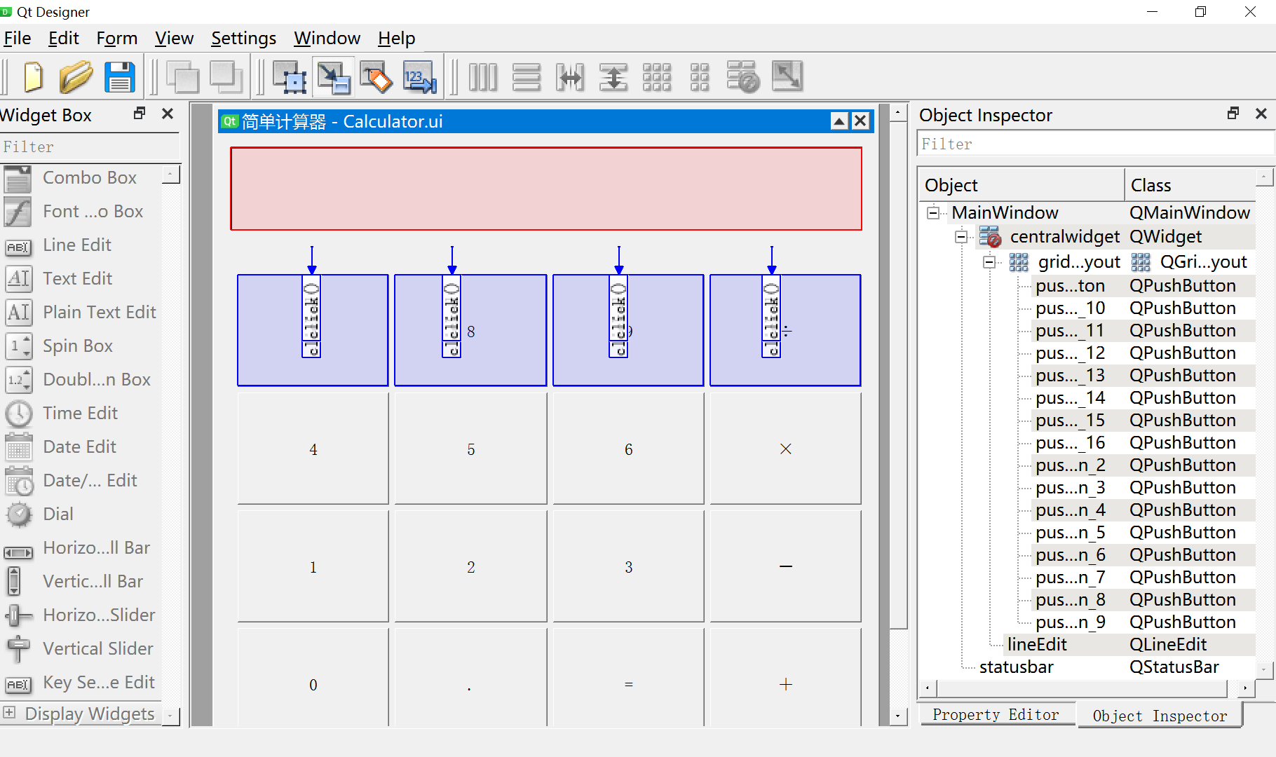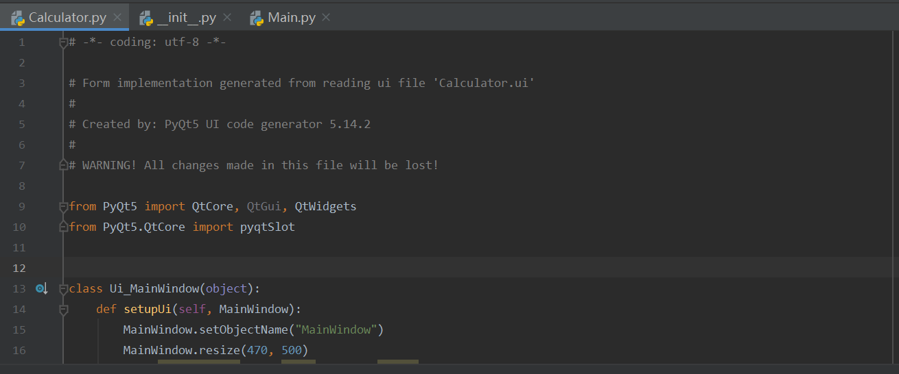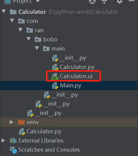 经过几分钟拖拽界面,完成了计算器界面的拖拽。经过 pyuic 工具将 .ui文件转化成 .py 文件,如图