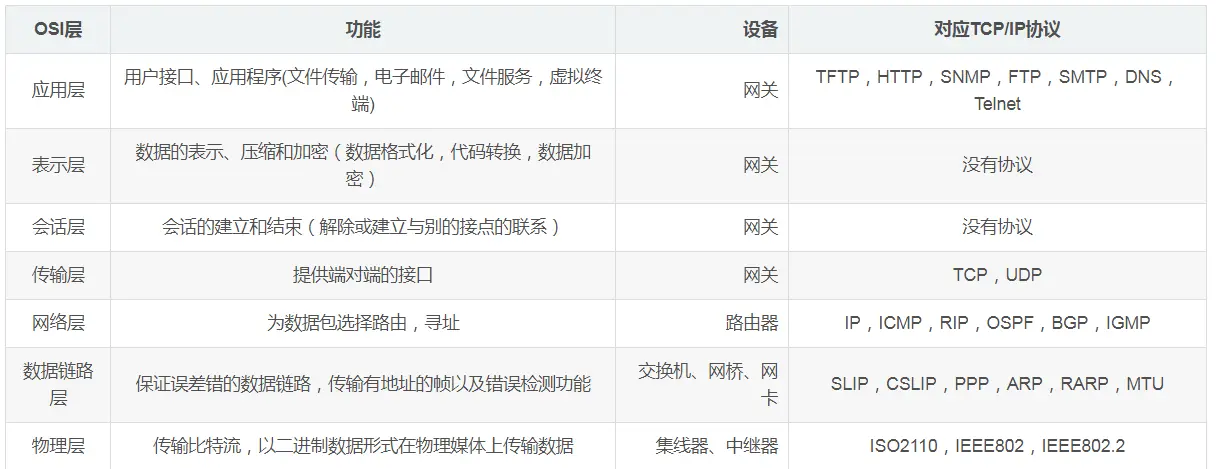 OSI参考模型分为物理层、数据链路层、网络层、传输层、会话层、表示层、应用层
