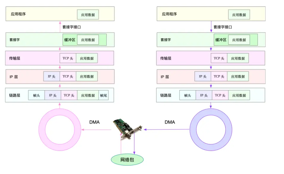 - 应用层:应用程序就可以使用 Socket 接口,读取到新接收到的数据了。