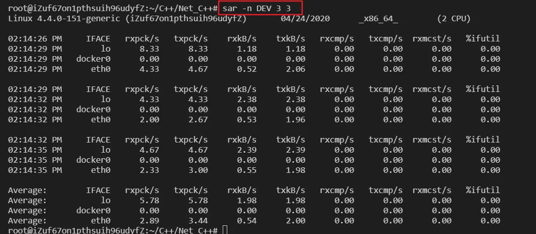 sar [ 选项 ] [ <时间间隔> [ <次数> ] ]参数(以网络为例)