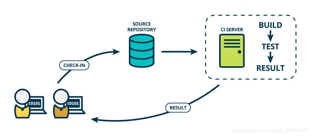 从这幅图上可以很清楚的看到「持续集成」的流程: