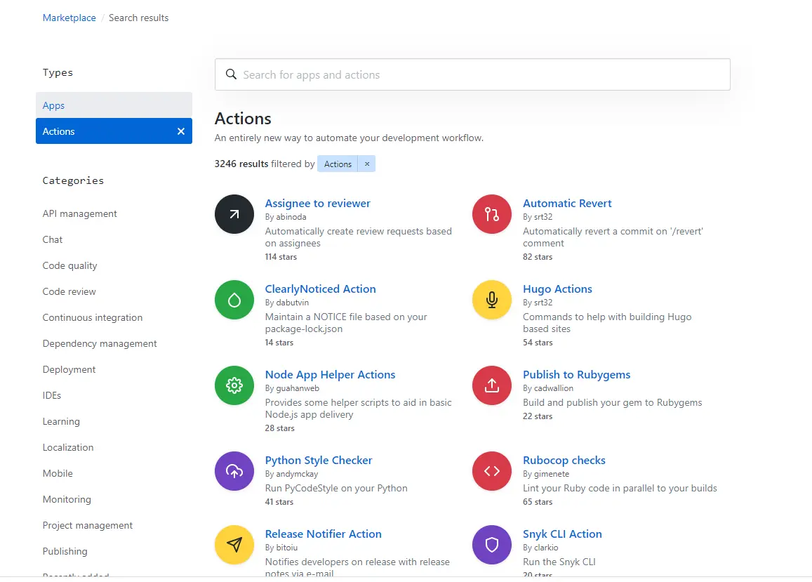 GitHub 做了一个官方市场,可以搜索到他人提交的 actions。