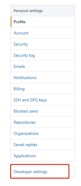 在左边栏选择 Developer settings :