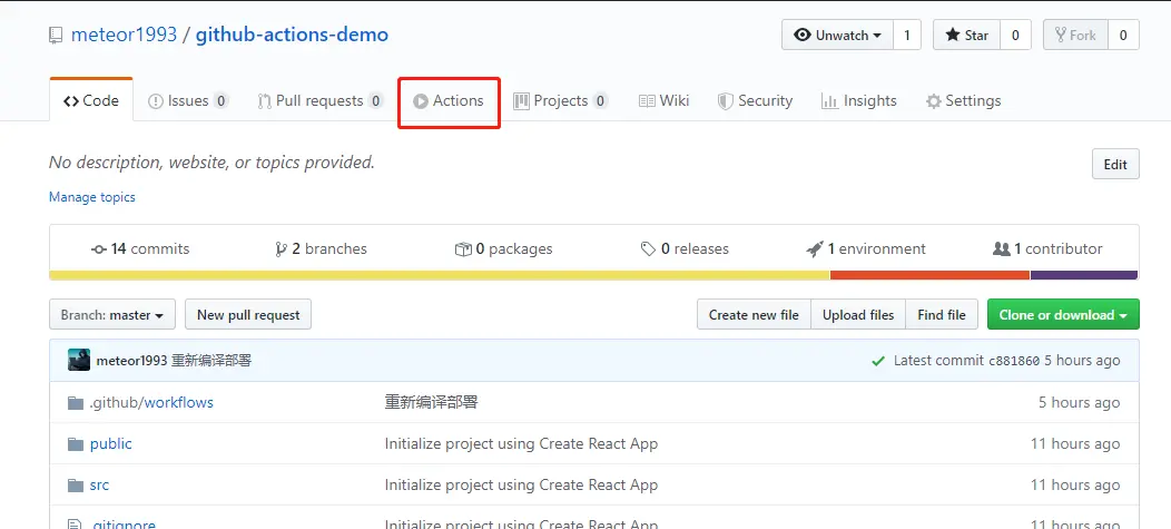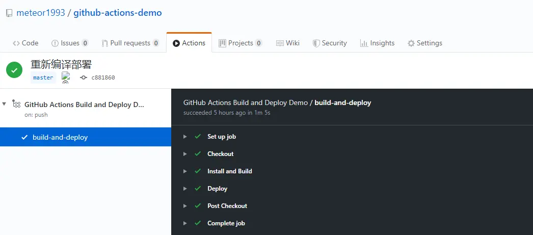 接下来最后一步就是将这个项目提交到 Github 的 master 分支,然后我们在 Github 上点击 Action ,就可以看到当前的构建了: