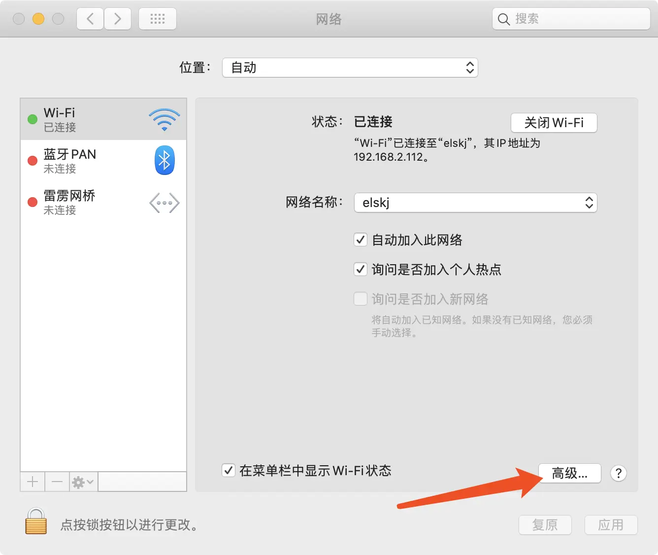 ONBOOT=yes #自动启用