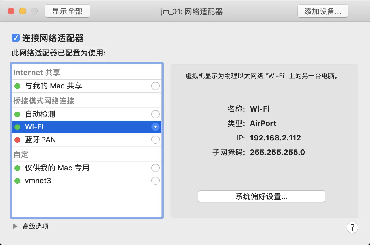 打开虚拟机网络配置