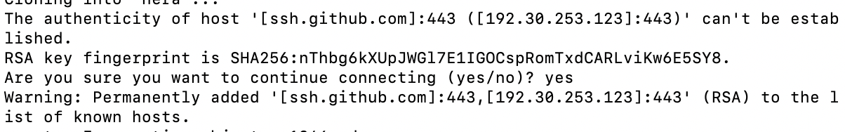 保存退出后重新git clone 代码会出现添加443端口连接提示: