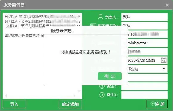 服务器远程连接以及多窗口操作 落霞与孤鸠齐飞 2020-04-25 233 阅读1分钟 服务器作为网站建设的常用设备,在服务器运行过程中起到举足轻重的作用。用户在选择服务器是常用的方式有服务器租用、虚拟主机租用以及服务器托管,通过进行文件以及数据的下载、上传等实现网站的更新,如果利用远程桌面进行批量操作,不仅可以实现远距离办公,同时还能批量处理数据,提高工作效率。 今天给大家介绍一款IIS7服务器远程管理工具:IIS7远程桌面打开IIS7远程桌面点击“添加”并输入vps信息添加完成后会有“添加完成”的提示最终成功打开也可以多个服务器同时操作这就是这个软件如何批量管理服务器,云服务器的方法,虚拟服务器,以后还会做到更好,请大家多多关注!