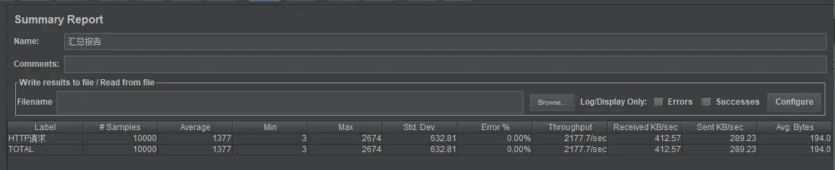 在设置为10000个并发请求的情况下,运行JMeter,结果首先出现了大量的报错,10000个请求中98%的请求都直接失败了。打开日志,报错如下: