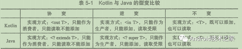 Kotlin 中的泛型是默认不型变的in代表泛型参数类型逆变,逆变泛型类型的父类型是被保留的,它只能出现在函数的输入位置,作为参数。out代表泛型参数类型协变,协变泛型类型的子类型是被保留的。消费者 in, 生产者 out,统称为型变。使用 out 使得一个类型参数协变,协变类型参数只能用作输出,可以作为返回值类型但是无法作为入参的类型,而in则刚好相反。比较:Kotlin 中的out A类似于 Java 中的? extends A,即泛型参数类型必须是A或者A的子类,用来确定类型的上限Kotlin 中的in A类似于 Java 中的? super A,即泛型参数类型必须是B或者B的父类,用来确定类型的下限