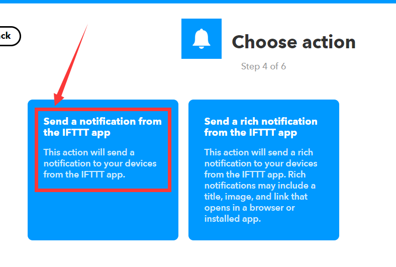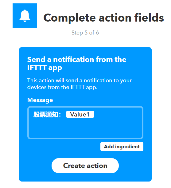 选择send a notification from the IFTTT app. 这个action能够使得IFTTT发出一个通知。