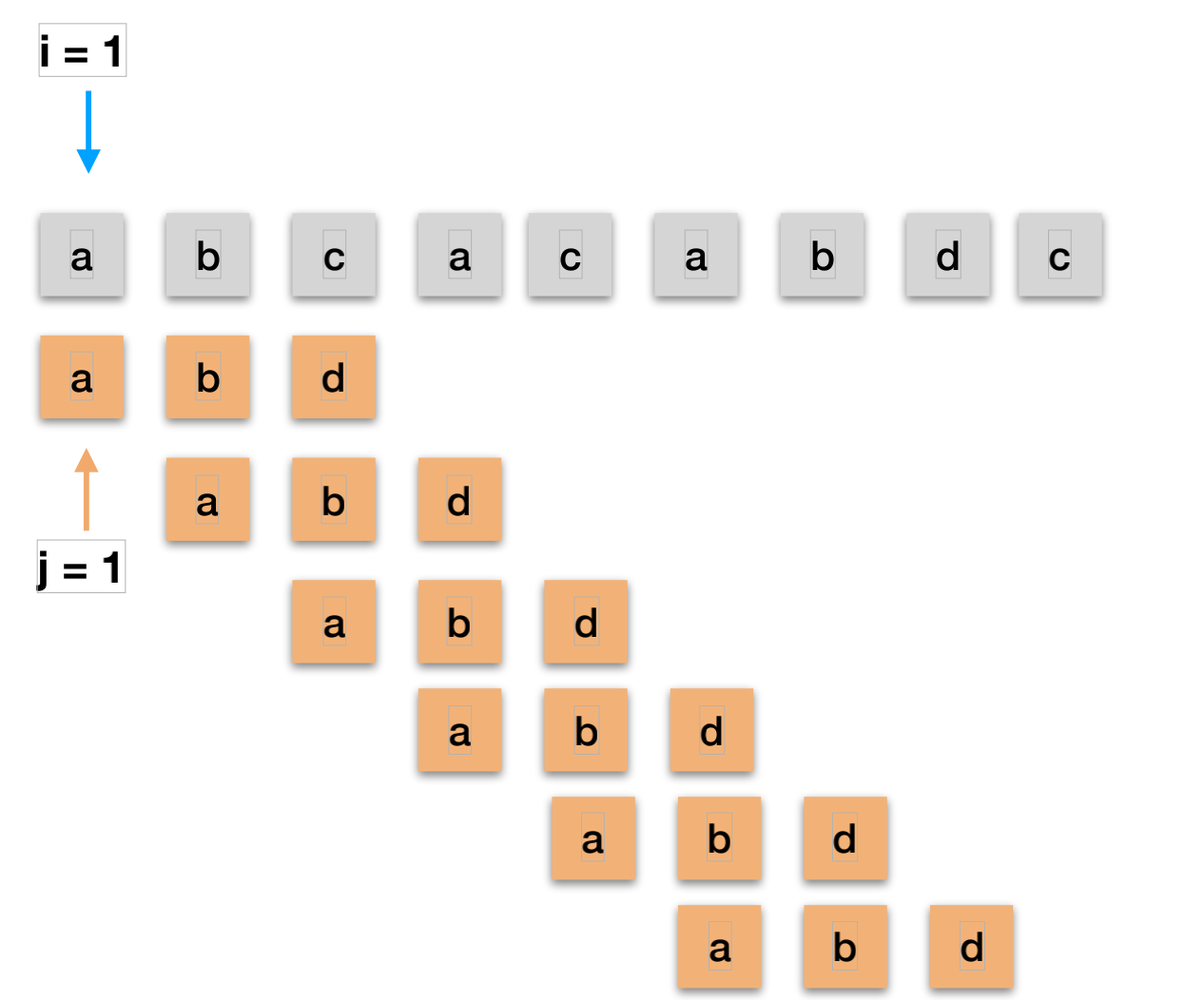 //i母串遍历的位置 - 模式字符串长度 = index 位置