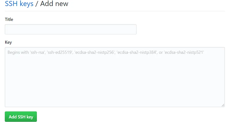 下一步返回你的 GIthub账户,进入设置那里添加一个SSH key,title随意(可取blog_key),然后把本地id_rsa.pub里的内容复制到Key里面来,点击添加即可。