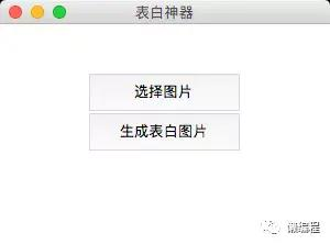 self.send_btn = Button(window, text='生成表白图片', width=15, height=2, command=self.gen_img) self.send_btn.pack() 复制代码 当点击选择图片按钮时,get_img方法会被调用,具体代码如下。