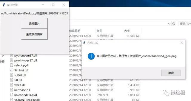 用Python做一个520表白神器,值得收藏 点击「选择图片」 选择JPG/JPGE/PNG三种中任意一种格式的图片,然后点击生成表白图片则可。这里还要注意:不管你是为了Python就业还是兴趣爱好,记住:项目开发经验永远是核心,如果你没有2020最新python入门到高级实战教程,可以加助理微信获取:bjmsb07