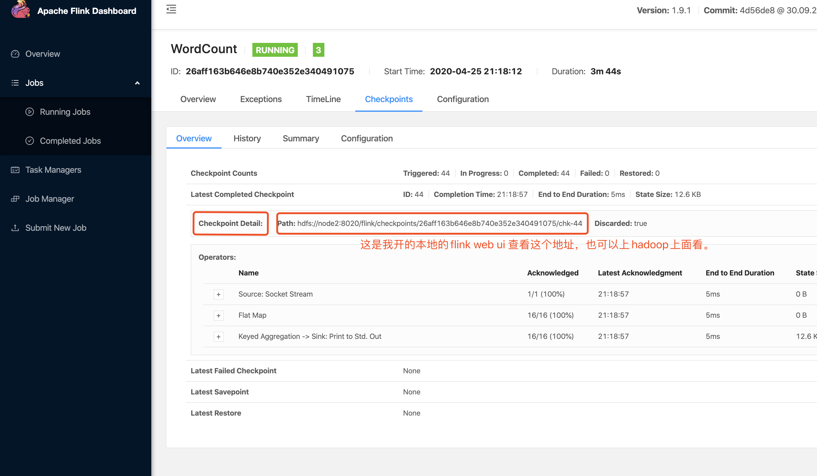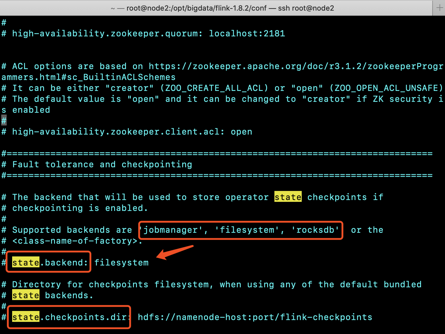env.setStateBackend(new FsStateBackend("hdfs://node2:8020/flink/checkpoints"));
