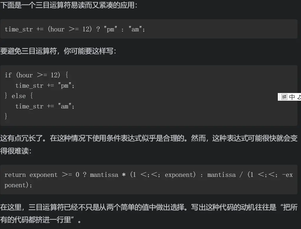 某些编程结构,像三目运算符(:?)、do/while循环,以及goto经常会导致代码的可读性变差。最好不要使用它们,因为总是有更整洁的代替方式。