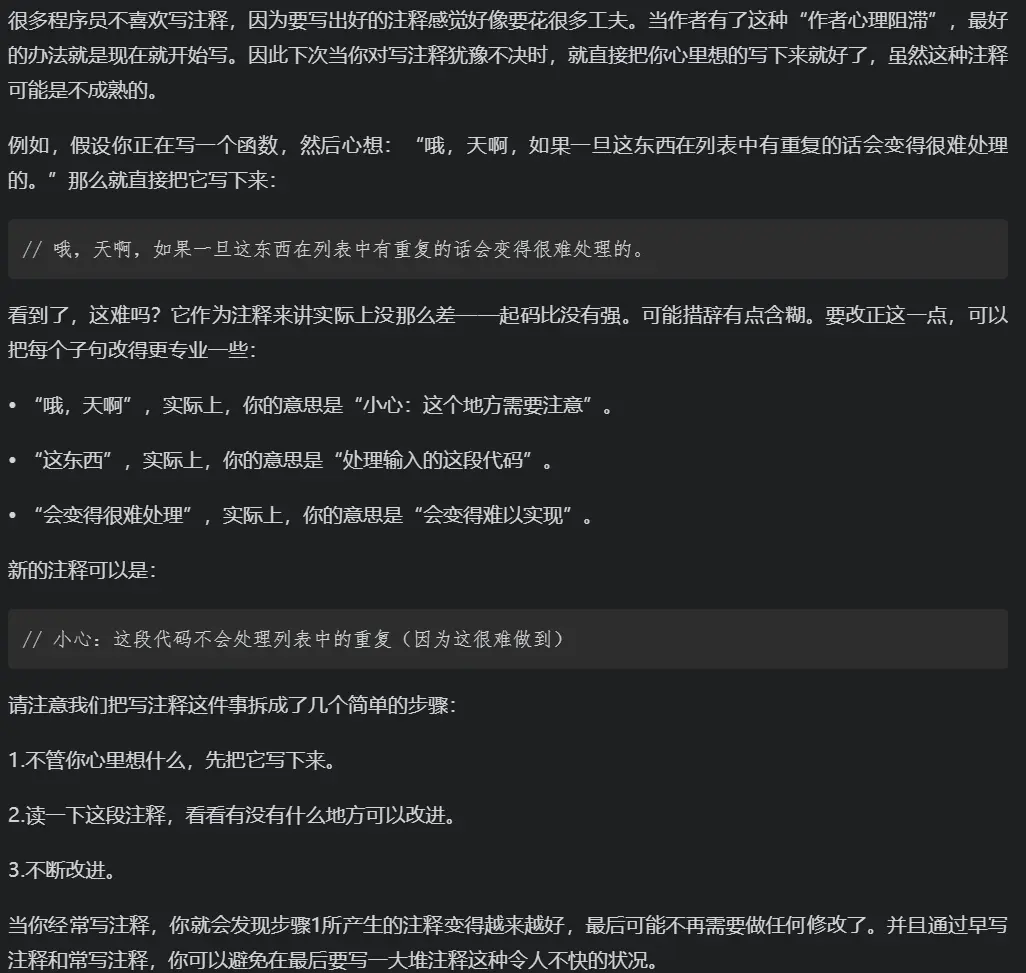 - 用来粉饰烂代码(例如蹩脚的函数名)的“拐杖式注释”——应该把代码改好。