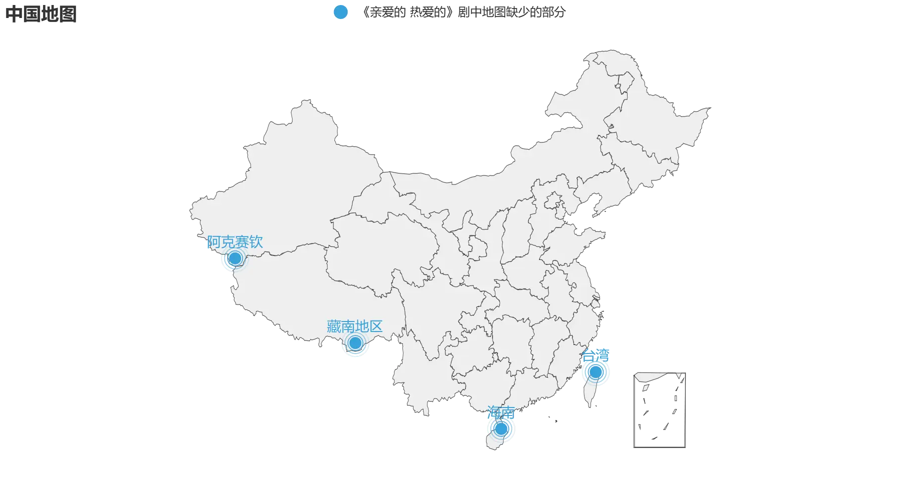 2. 第二步, 在中国地图上标记出 《亲爱的 热爱的》 剧中的地图所缺失的部分