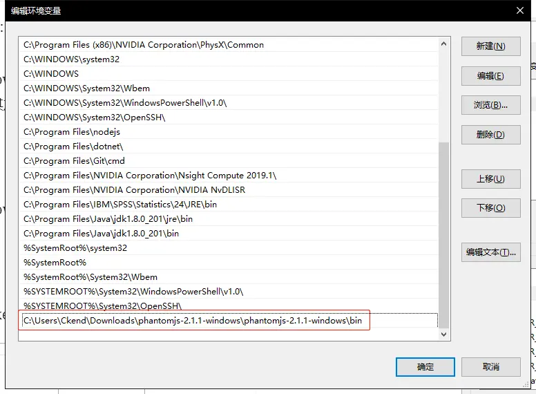 向系统变量的path的后面,加入我们 phantomjs.exe 的路径,比如我的是加入: