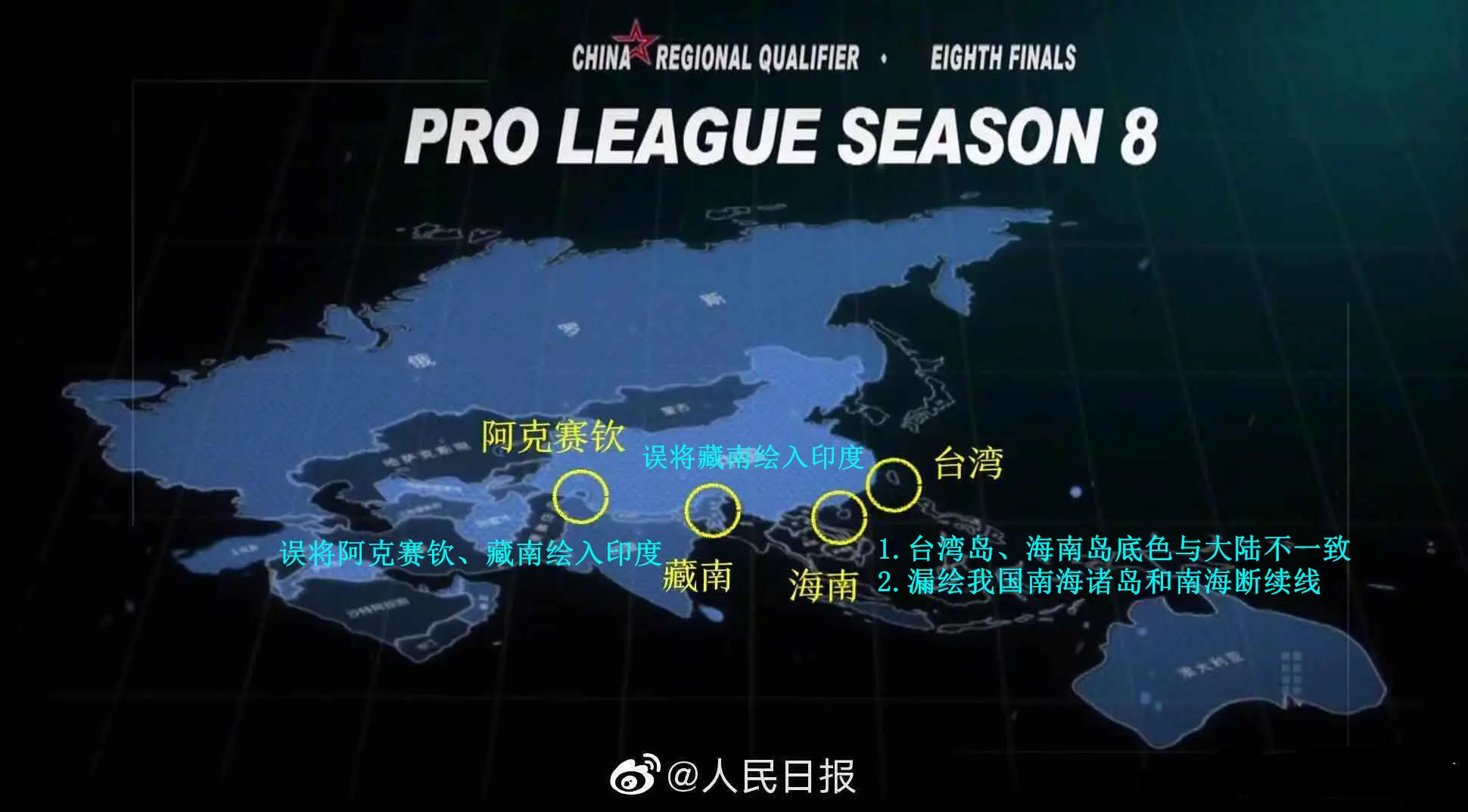 该剧中使用的地图存在错误表示阿克赛钦和我国藏南地区国界线、我国台湾和海南岛底色与大陆不一致、漏绘我国南海诸岛和南海断续线、克什米尔地区不符合国家有关规定等问题。