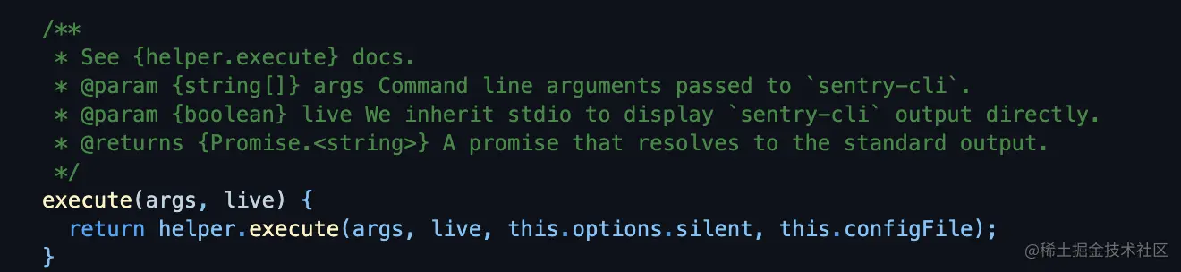 这里获取到的cli就是@sentry/cli,也就是文档中的sentry-cli。通过源码可以看到,可通过Release.execute来执行命令。