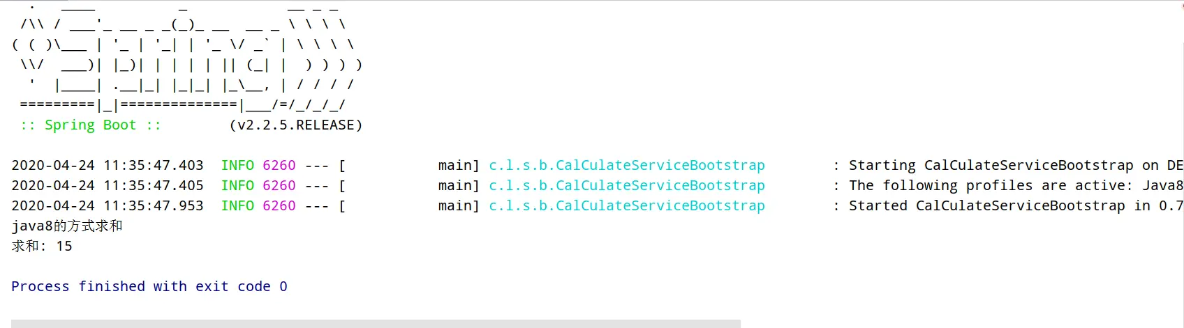 System.out.println("求和: " + calCulateService.sum(1,2,3,4,5));