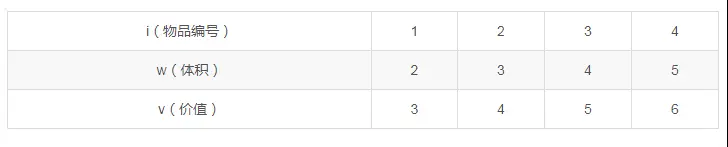 下面我们列一个相关的表格 i为前i个最佳组合,j为当前背包容量,表格中意味着,当前的最大价值