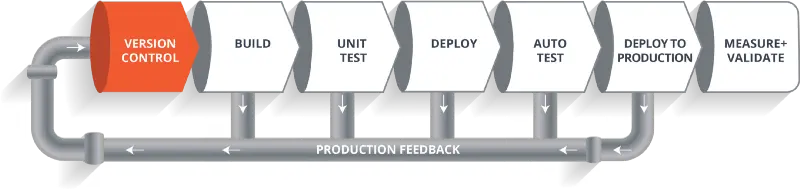 如上图所示,该流水线展示了一个软件在其最终交付给客户或者投入上线之前的移动过程,它在其生命周期内的各个阶段包括:版本控制、构建、单元测试、部署、自动化测试、部署到生产环境、度量和验证阶段。