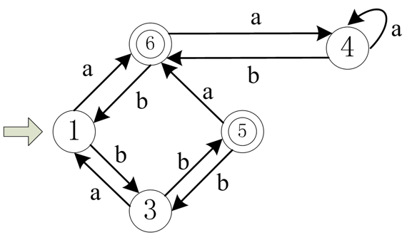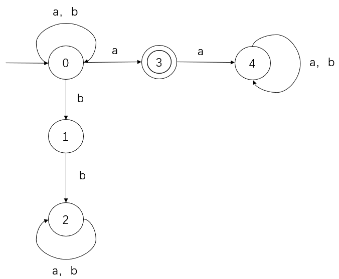 将最后一个笛卡尔积和闭包进行拆解,得到最终的有限自动机如下: