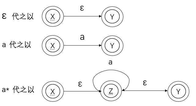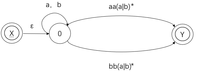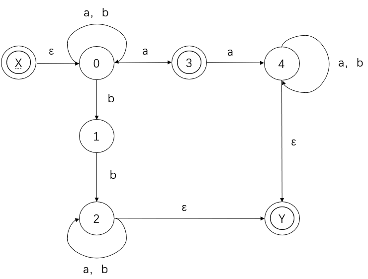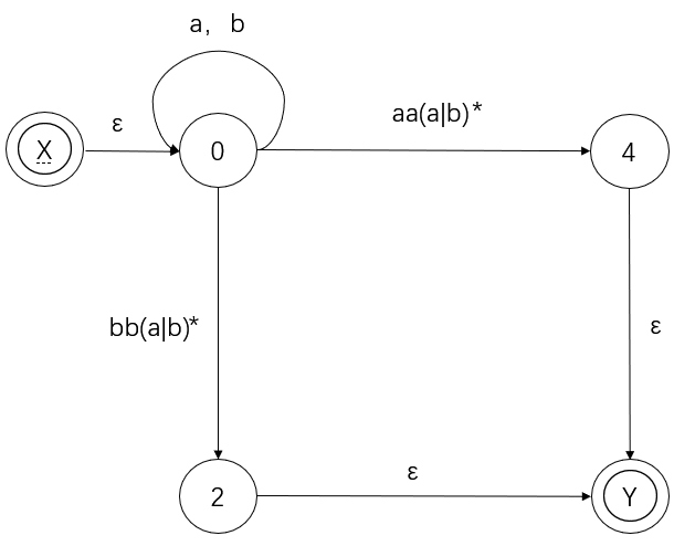 首先构造开始符号 X 和终结符号 Y,并与原有限自动机的开始符号和终结符号进行连接: