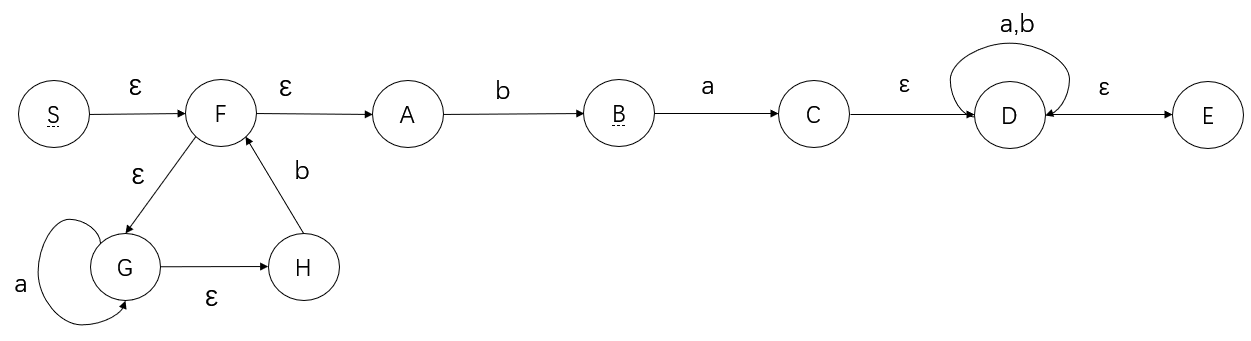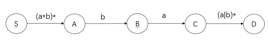 首先拆解为四个部分:(a*b)*,b,a,(a|b)*,以 S 作为开始符号。