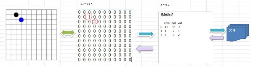 当一个数组中大部分元素为0,或者为同一个值的数组时,可以使用稀疏数组保存该数组