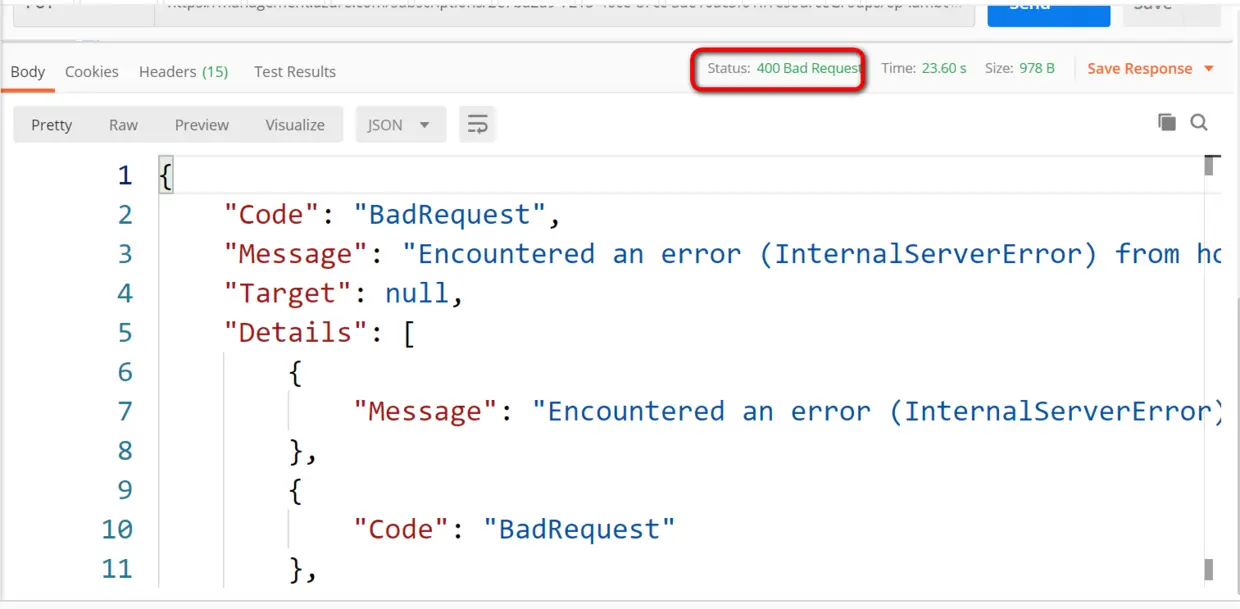 在开发过程中发现该API工作不太稳定,同样的输入,时不时会返回HTTP 400 Bad Request:Encountered an error (InternalServerError) from host runtime
