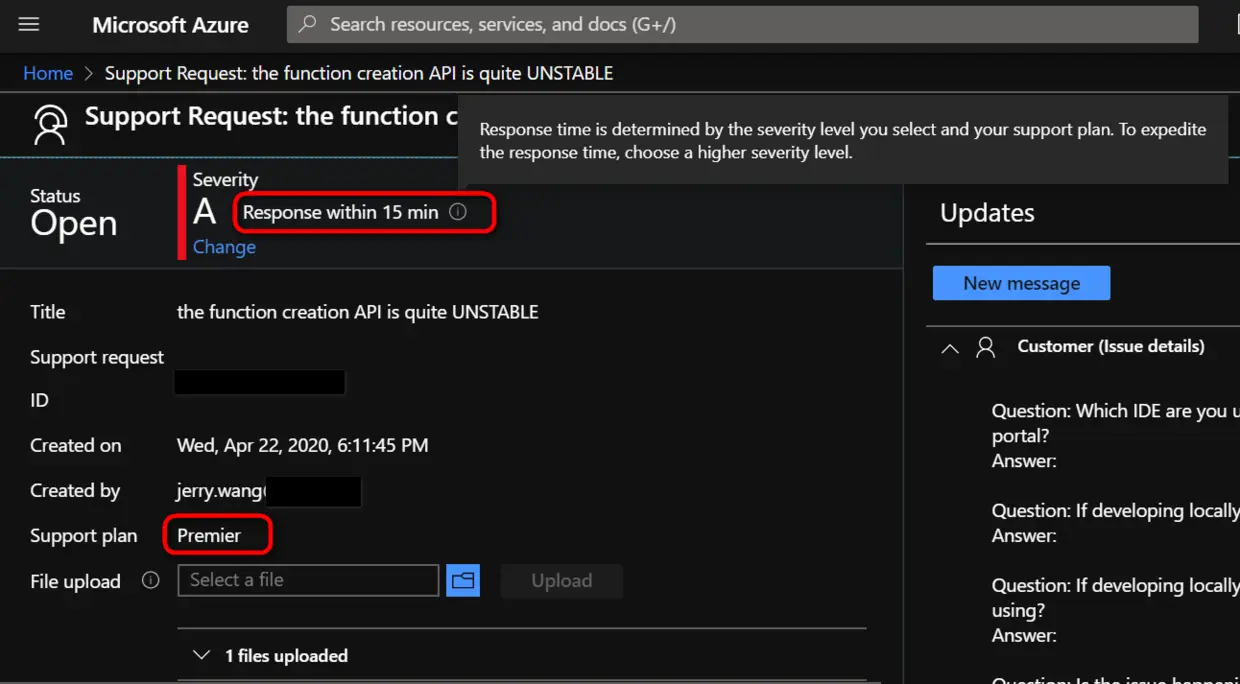 再回到Jerry遇到的那个Azure上执行function创建API遇到的HTTP 400 Bad request的incident,至本文发稿时为止还是未能得到解决。