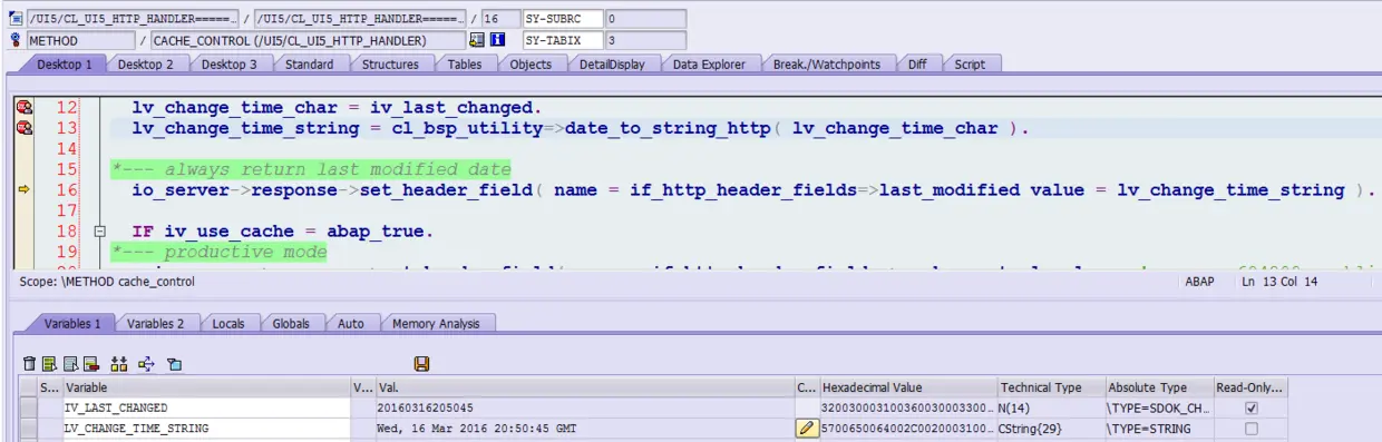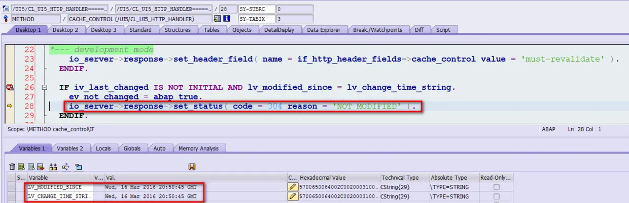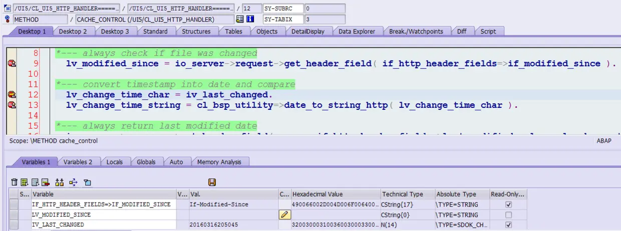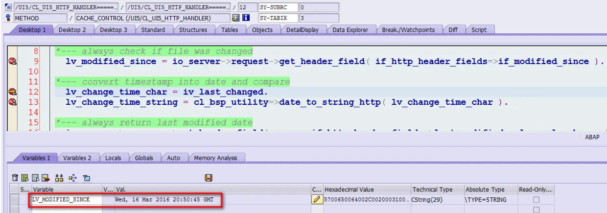 按F5刷新的这个请求到了服务器端,这一次ABAP服务器成功解析出请求字段If-Modified-Since的值: