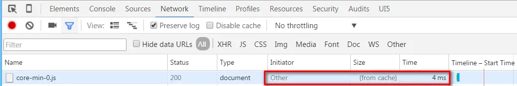 关掉Chrome,再打开,再访问同一url,此时Chrome直接从自身的cache里返回该JavaScript文件,而不是向ABAP服务器上发起请求。因此服务器上所有ABAP断点均不会触发。