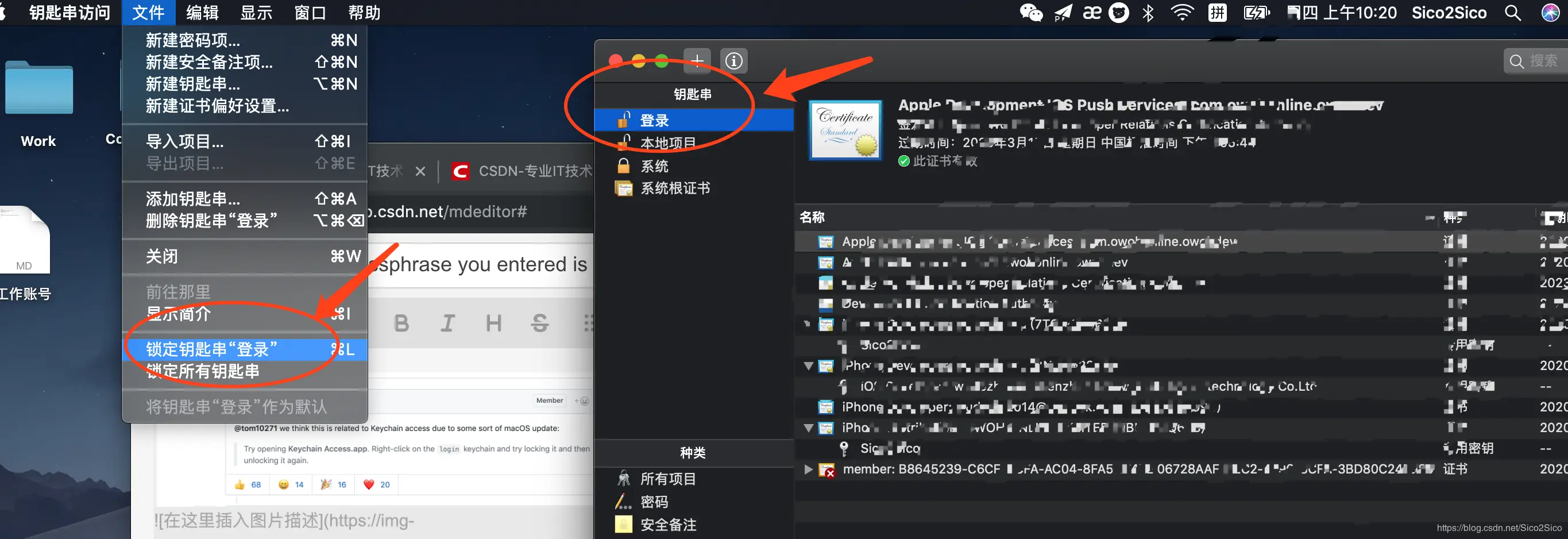 进入mac电脑的 钥匙串 选择登陆, 之后选择锁定钥匙串“登陆”,再点击登录,选择解锁钥匙串“登录” 就可以了。然后进行docker login成功。