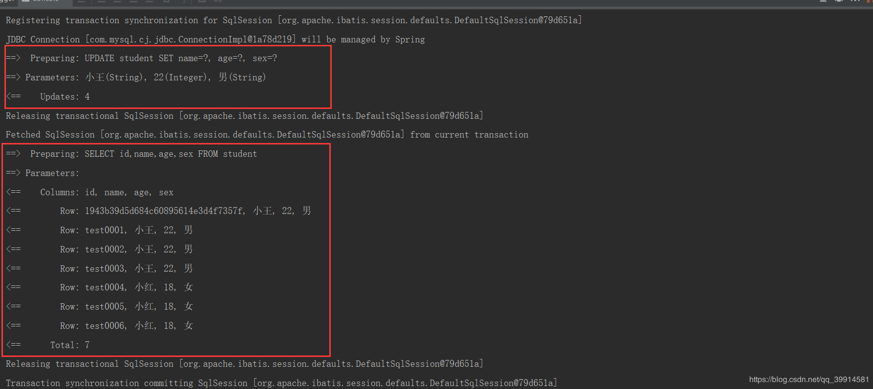 studentMapper.insert(new Student("test001","小红",22,"女"));