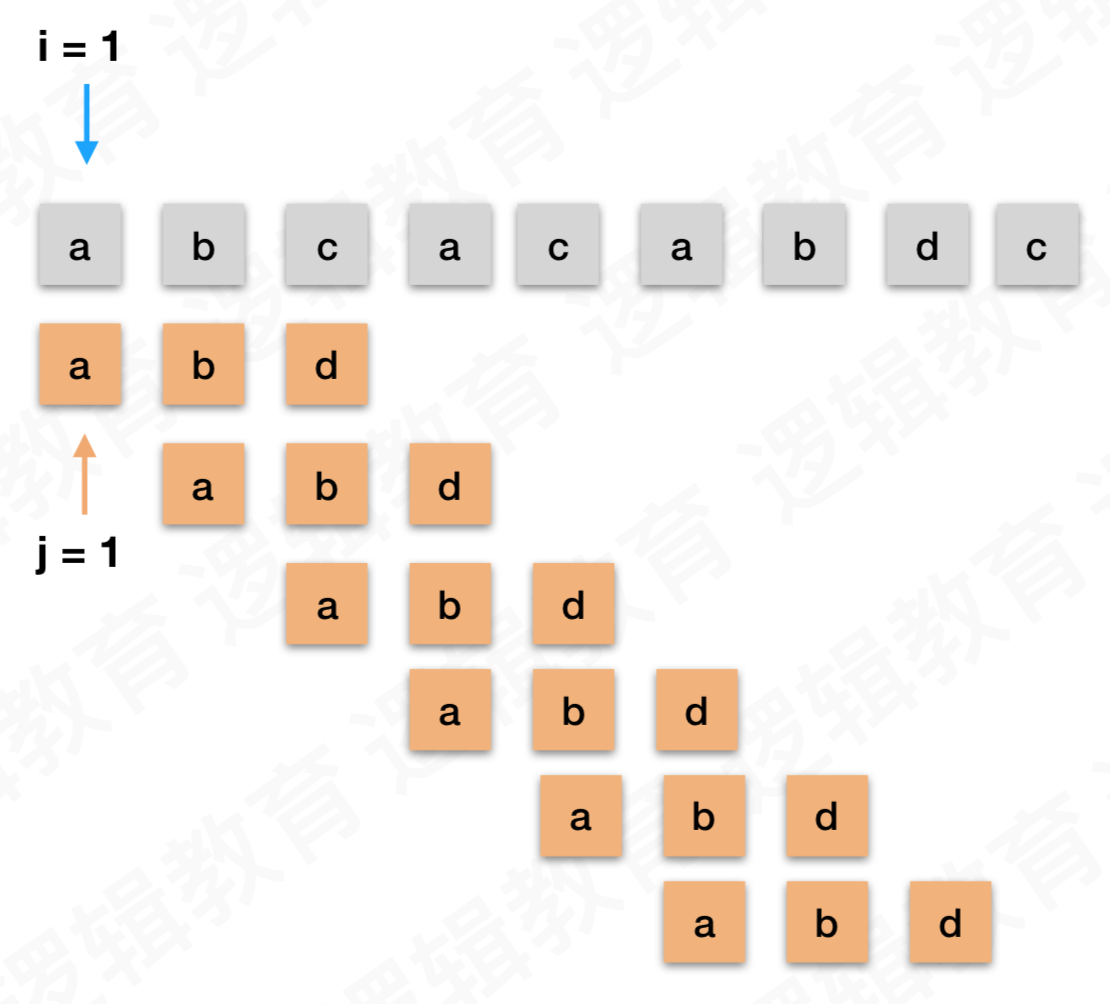 假设主串长为n,模式串长度为m,那么按顺序将主串分成n-m+1个子串